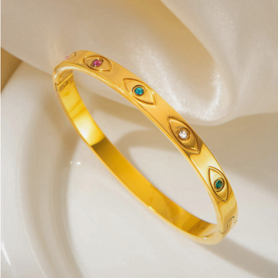 Gold Evil Eye Bangle with Multi-Color Zircon